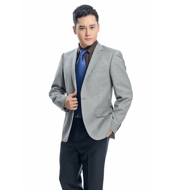 單粒扣淺灰色西裝,時尚百搭風范,適合各種行業穿著,款式利落大方,采用經典的后開叉設